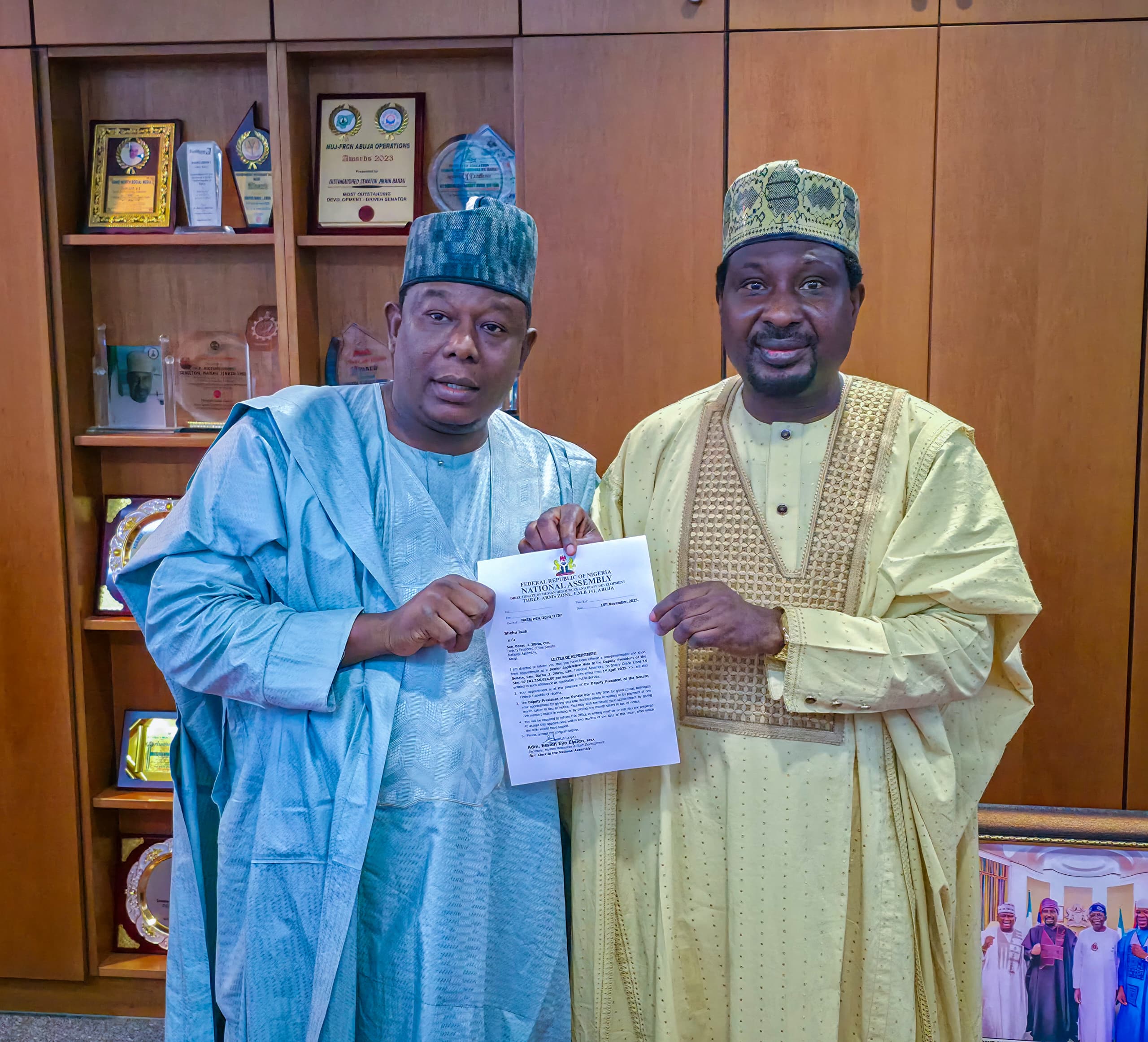 Mataimakin Shugaban Majalisar Dattawan Najeriya Sanata Barau Jibiril ya amince da nadin Shehu Isah a matsayin babban mai taimaka masa kan harkokin majalisar.